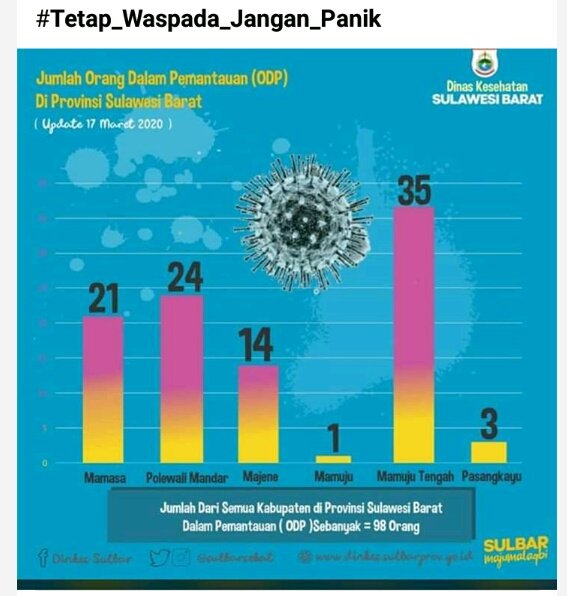 Saat dihubungi melalui via Whatshapp, Kamis (19/03/20). Kadis Kesehatan Provinsi Sulawesi Barat, dr Muhammad Alif membenarkan data tersebut, sesuai yang di posting dihalaman Facebook Dinas kesehatan Sulbar.