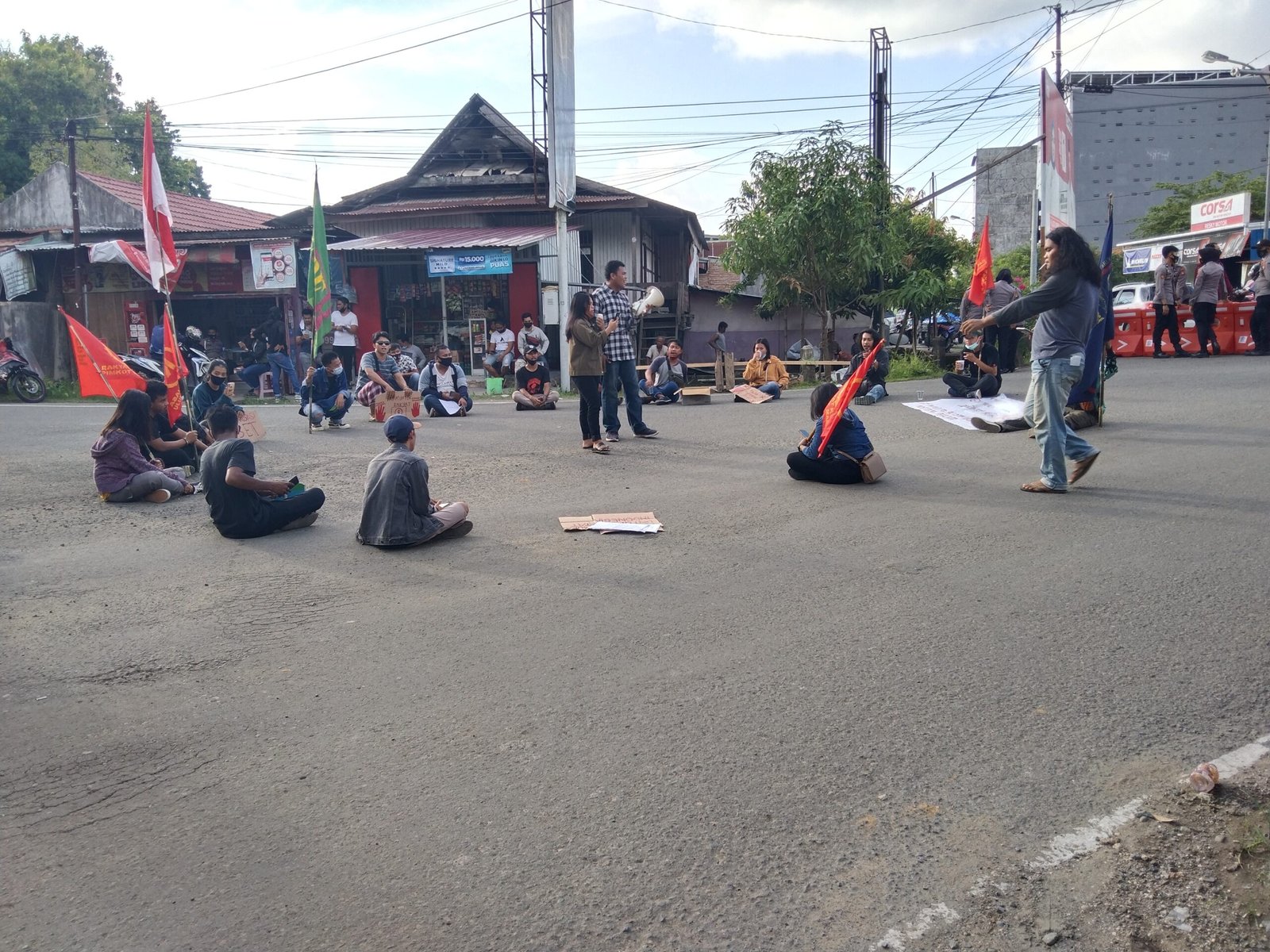 Aksi tersebut dikawal puluhan aparat keamanan. Jalur lalulintas di Simpang Lima Mamuju sempat ditutup selama demonstrasi berlangsung.