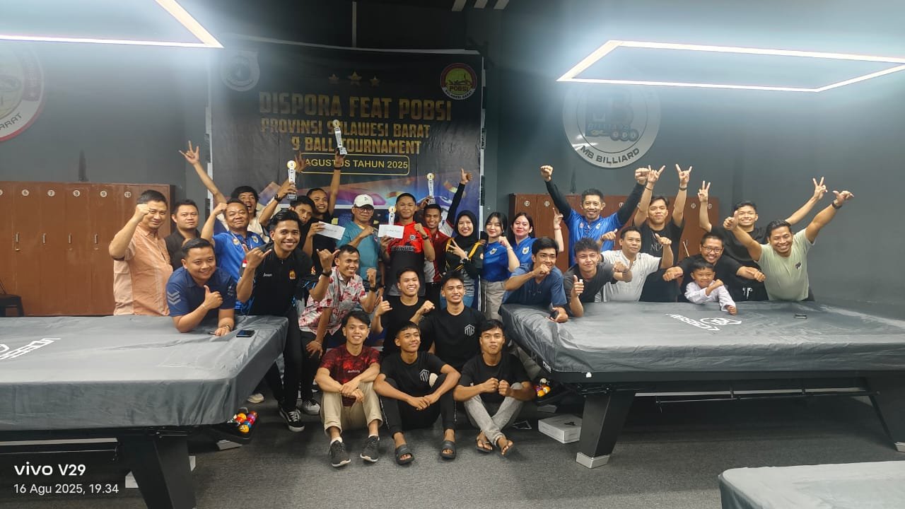 Mamuju, – Turnamen Biliar POBSI Sulawesi Barat yang digelar dalam rangka memperingati HUT RI ke-80 resmi berakhir pada Selasa (16 Agustus 2025). Sebanyak 96 peserta dari berbagai klub di Sulbar telah bertanding dengan penuh semangat dan sportivitas.